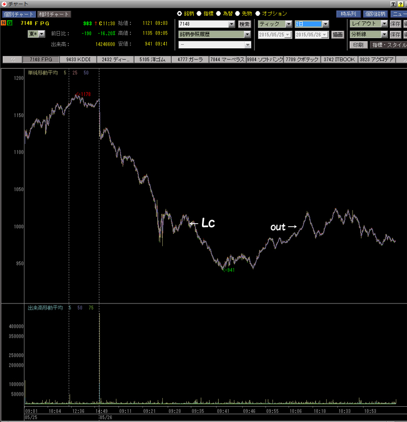 ひどい展開になったのが 7148 FPG 9時20分過ぎからひどい交通事故型のド急落の展開になりそれに巻き込まれて、ルールを破っての結構な買い増し。。。