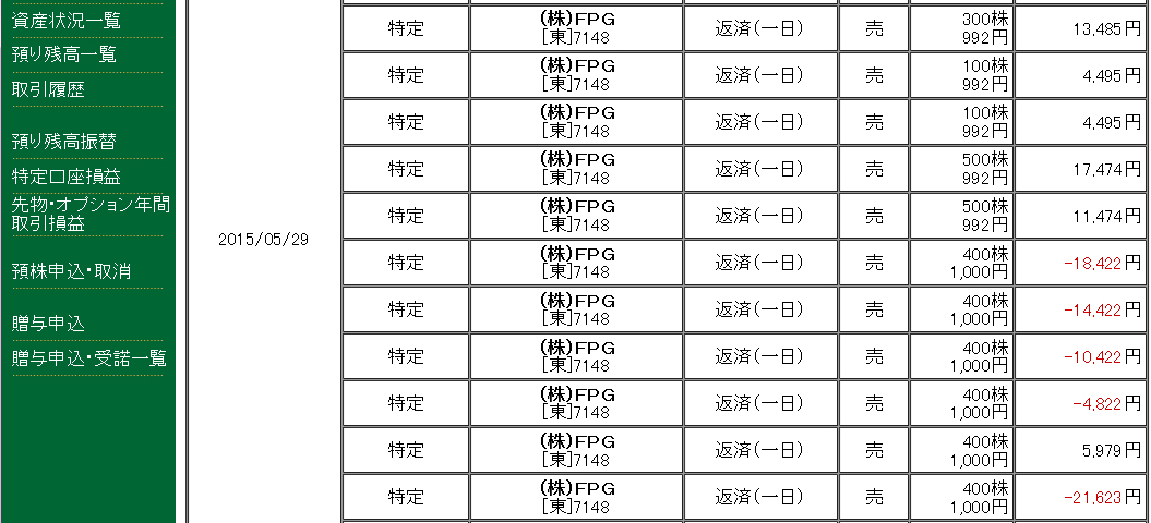 その後がたまたまラッキーというか本当はやっちゃいけないトレードなんですが、もう気持ち的にどうしようもなくなっていて、更にFPGが落ちてきたところで買ってホールドし、+50000円利益のところまでは絶対売らないか、更に安値を超えたら大規模ロスカットかの自分にはないスタイルである種、博打的なトレードをしてたまたま運がよくそこまで上がってくれて前場なんとかトータルプラスで終えることができました。