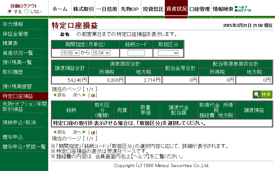 今月の特定口座損益