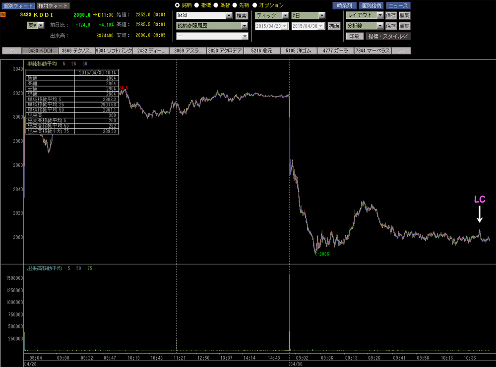 あとは直近4月30日のKDDIにつかまった大規模ロスカットですね。